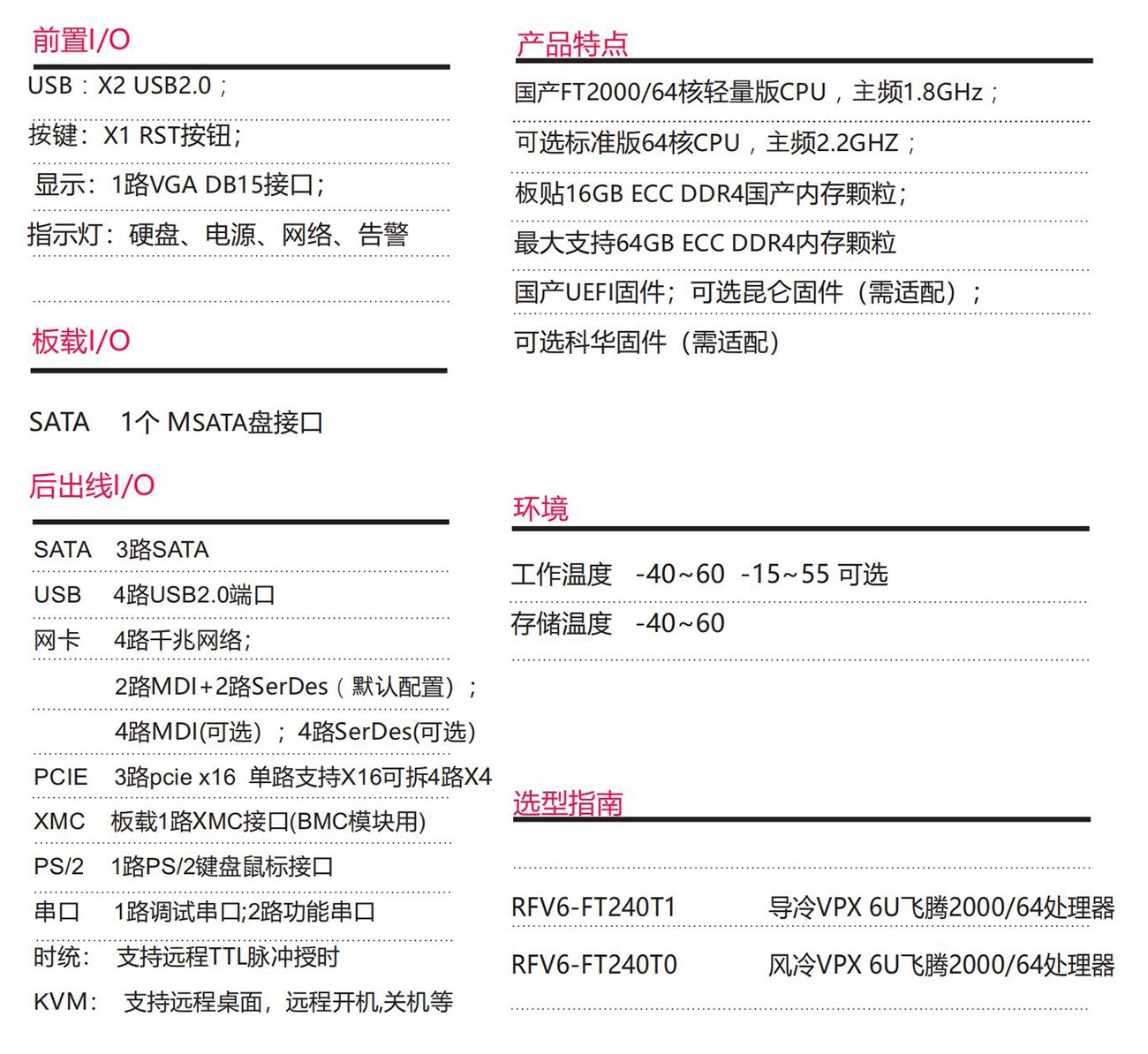 采用國(guó)產(chǎn)飛騰處理器遵從 VITA65 規(guī)范支持貼裝不同規(guī)格 FT2000/64 CPU 最大支持64GB ECC DDR4內(nèi)存4路千兆 以太網(wǎng)絡(luò)支持TTL脈沖時(shí)統(tǒng)。具備豐富的外圍接口;設(shè)計(jì)了 高效的散熱系統(tǒng),可顯著提高處理器的浮點(diǎn)運(yùn)算性能,以 太網(wǎng)、PCIe、支持高帶寬數(shù)據(jù)傳輸,滿足視頻采集與處理、雷達(dá)和聲吶等應(yīng)用對(duì)高速數(shù)據(jù)傳輸?shù)囊蟆M足無人機(jī)、雷達(dá)、水面艦艇等軍工領(lǐng)域。